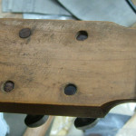 The restoration of old instruments often demands the whole spectrum of a luthier’s craft skills. In some cases even the dissembling of the guitar in all its parts is necessary. Thus, the recreation of authentic components can be a challenge. Especially old guitars are distinct and particular attention should also be given to the traces of its builder. Since signs of age and even changes due to previous repairs are often manifested and can be traced back.